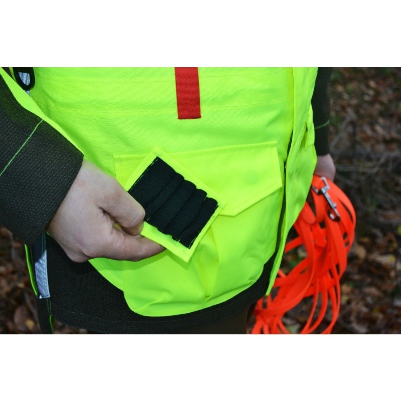 Die Jacke bietet zahlreiche durchdachte Taschenlösungen: Brusttaschen, Cargotaschen mit Patronenhaltern, eine Wildtasche, eine Funkgerättasche sowie ein Handyfach mit Reißverschluss. Drei unterschiedlich große Innentaschen bieten zusätzlichen Stauraum. Der Neoprenhandgelenkschutz, die verstellbare Taille und der verlängerte Rücken sorgen für optimalen Tragekomfort – auch bei längeren Einsätzen im Revier.