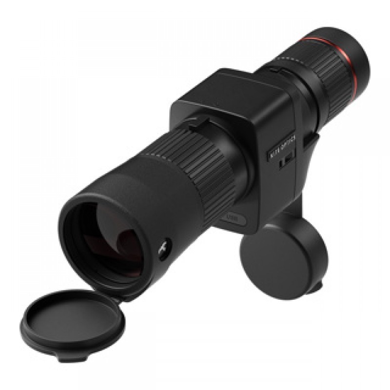 Die hochwertige ED-Optik sorgt für eine hervorragende Schärfe, hohe Kontraste und natürliche Farbwiedergabe bei gleichzeitig hoher Lichttransmission. Das ergonomische Design mit großen Fokus- und Zoomrädern ermöglicht eine intuitive Bedienung auch mit Handschuhen. Dank der robusten, wasserdichten Konstruktion und Stickstofffüllung bleibt das Gerät auch unter schwierigen Wetterbedingungen zuverlässig einsatzbereit.