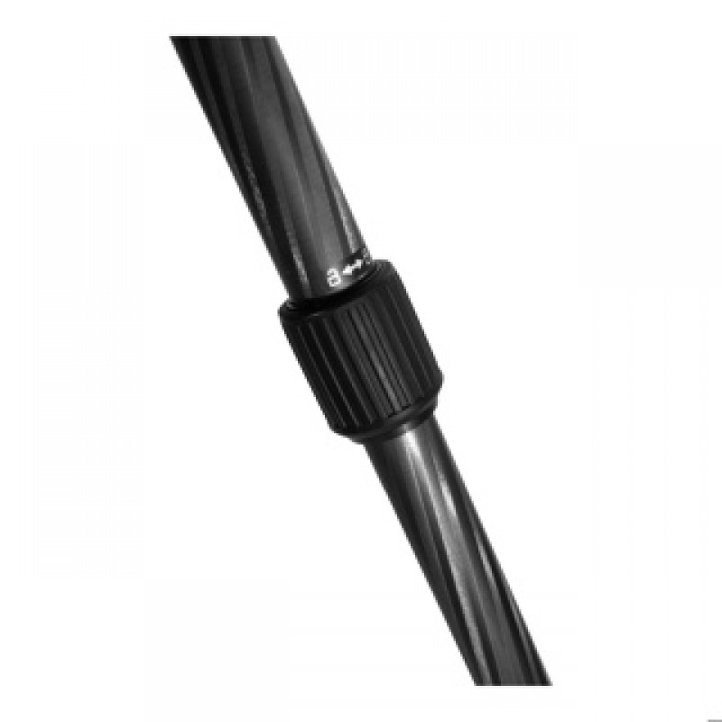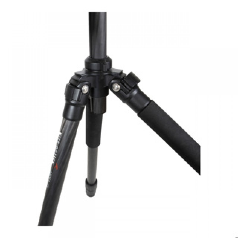 Die Kombination aus Carbonkonstruktion und Magnesiumkomponenten sorgt für hohe Stabilität bei moderatem Gesamtgewicht, während der einziehbare Gewichtshaken zusätzliche Standfestigkeit bei Wind ermöglicht.