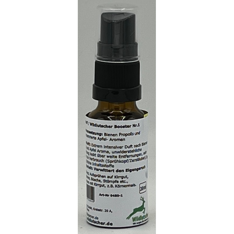 Der Wildlutscher Flüssigköder Booster Nr.1 ist ein hochwirksamer Lockstoff für vielfältige Wildarten, der durch seinen intensiven Duft nach Apfel und Bienen Propolis überzeugt. Ideal für die Fallenjagd und anspruchsvolle Reviere.