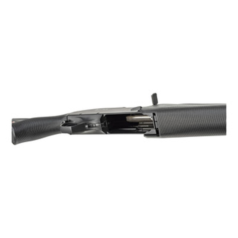 Die offene Visierung mit Glasfaser-Korn und Battue-Schiene ermöglicht eine extrem schnelle Zielaufnahme bei bewegtem Wild. Der schwarze Verbundschaft mit Pistolengriff, Hunting-Vorderschaft und aufgerauter Grifffläche bietet auch bei Nässe oder Kälte einen sicheren Halt. Das Aluminium-Systemgehäuse hält das Gewicht niedrig und sorgt gleichzeitig für hohe Stabilität.