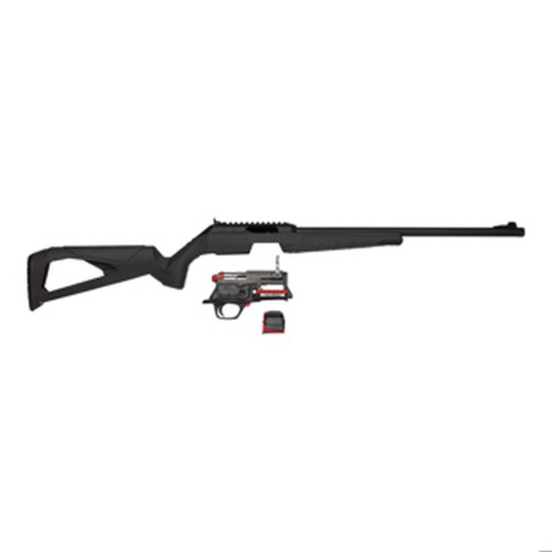 Die Winchester Wildcat Stealth ist eine moderne, extrem führige Selbstladebüchse im Kaliber .22 LR, konzipiert für dynamisches Training, Plinking und jagdliche Übungsschüsse. Als Waffe der französischen Kategorie B erfüllt sie die entsprechenden Zulassungsvorgaben. Der 18" / 457-mm leichte Hunter-Lauf sorgt für eine ausgewogene Balance zwischen Präzision und Handlichkeit, während die hochglänzende Brünierung eine klassische Optik mit zuverlässigem Korrosionsschutz verbindet.